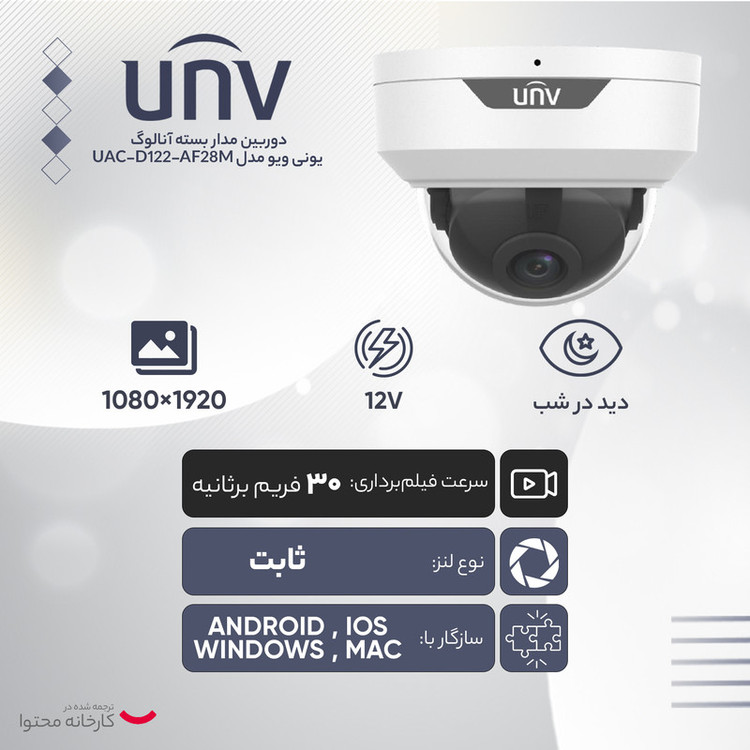 دوربین مداربسته آنالوگ یونی ویو مدل UAC-D122-AF28M